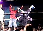 バトルのDJを勤めるのはB-BOY PARK DJバトル準優勝のDJ TAKU。司会はSound Cream Steppersの堀江ハルキがレフェリーの衣装で登場。今回のルールは2on2、1on1ともに2ラウンド、2回戦以降は3ラウンドになる。また、ヘルメットの使用を禁止するというルールも定められた。 |