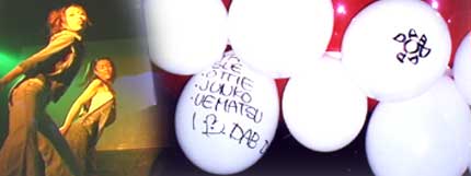 | 6/20(Thu)、六本木COREにて「DAB DAB」が開催された。今回はオーガナイザーであるAKIKOがL.A.出張のため不在だったが、彼女の“ダンスイベントを本当に楽しんでもらいたい”気持ちが定着してきたこともあり、多くの観客が集まっていた。また当日はW杯の期間中ということもあり、外国人の姿も多く見受けられた。B2フロアではステージを中心に300個もの風船が設置され、会場を華やかに彩っていた。 |