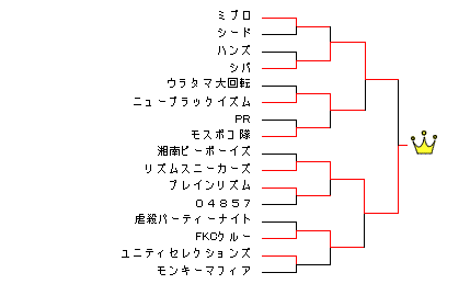 チノ, ヒカル, カツ, ミツギ, ミツ, ワカタケ, ケイクK, Q-UNIQE, CRAZY LEGS |
