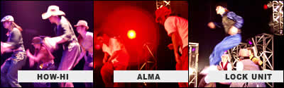 | そして、女性なら誰しも憧れるいかついかっこいい踊りをするYAMATO、MICKEY、OKEI、JUNGLEの「HOW-HI」ときてKOJI、HIROSHI、HIROのHOUSEの「ALMA」、そして今回MC