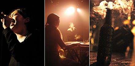 4周年、ゲストダンサー第1陣で登場。ビリンバとパーカッションの合奏から登場してきたのは、日本でナンバーワンの実力を持つカポエリストYOKO。勇ましくなっていく身体と共に、いい女になっていく彼女。確実に実力を上げ、日々完成度の高い内容を追求していく姿勢には脱帽。そして、楽しそうにパーカッションを奏でながら、会場の空気と交信しているOSAMIのソロパフォーマンス。ストイックに突き進む姿勢と、着実に身に着けているクオリティーも素敵。全体的に音楽と踊りのセッションの微妙なズレが、少しもったいなかったかな。 |