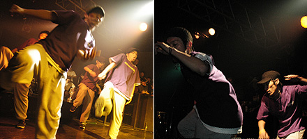 始まりから確実に音をはめ込んできたショウケース。ハウスのステップだけではなく、踊りというスタンツが表れていて、個人的に一目惹かれるところがあった。HIROとTATSUOのフロアルーティンは、有り得ない身体能力を思わせるストイックさ。全体の構成は凄く高いし、内容としても面白いけど、もう少し練習時間があったらVIBE的にも全体的にももっと揃ったのかな。今回のHIROのソロはかっこ良くて、個人的に凄く好き。そして最後のルーティンはやっぱり凄い。疲れると思うけど、もっと広いところでまた見たい。 |