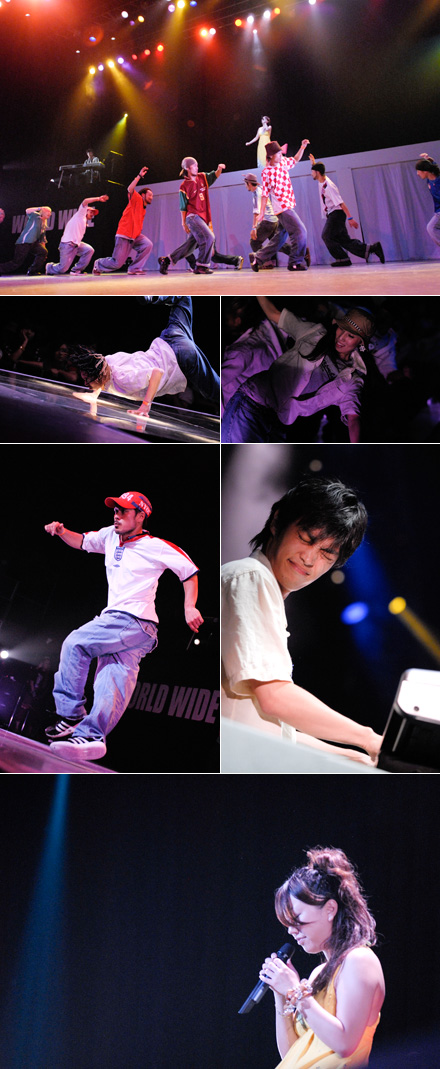 DABDABでのオーディションで選ばれたダンサーによるBarcelonaナンバーがついにお披露目!サッカー応援ソングをハウスダンサーが形にすると・・・?舞台奥から月嶋カリンとFlat Threeが音楽というパスを送り、キャッチしたダンサーたちはゴールを決めるかのように軽やかなステップで観客の胸にパワーを届けていった。ちなみに、全員の各国のユニフォーム提供はフットサルチーム所属のOhishi氏。さすが!