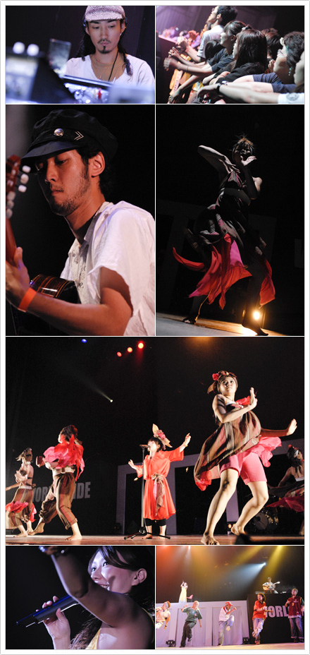 序盤は、1枚の大きな布が5人のスカートとなり、シンクロナイズドスイミングの如く、呼吸の合ったユニゾンで幻想的な空気を醸し出した次の瞬間、灼熱の太陽の下に現れた5人の熱い美女たちに早変わり!改めてサルサというダンスのバランス感覚とキレ味、女性らしいのラインの見せ方に驚嘆。サルサを見る機会があまりないであろうこの日の観客たちも、食い入るように見入っていた。